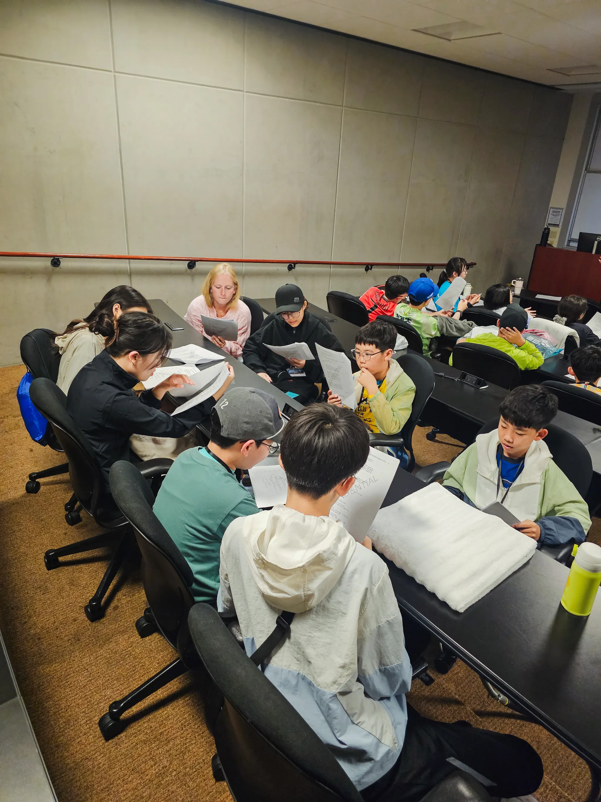 25명 학생 기준 교실에 주강사 1명, 보조강사 3~4명이 지도함 (2025년은 학생 수가 27명이라 조금 더 늘려서 진행했음)