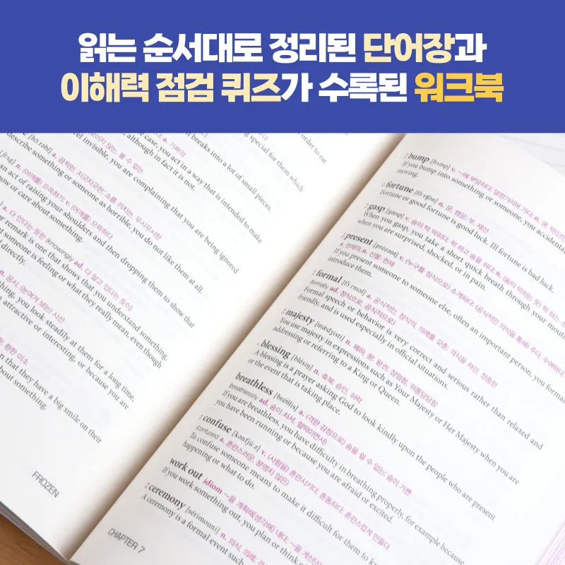 어려운 단어의 뜻은 워크북 단어장에서 확인할 수 있습니다.