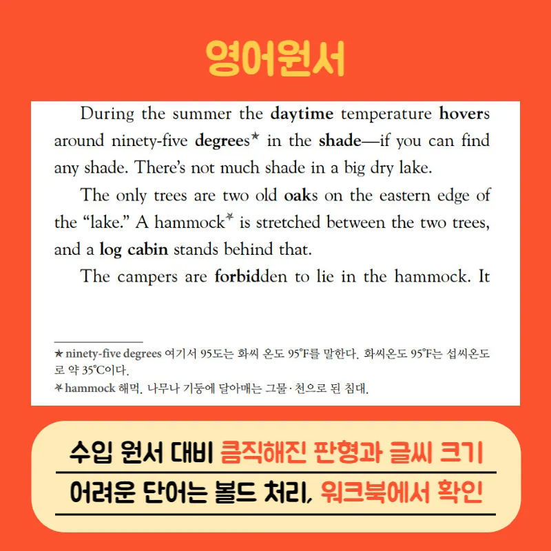 수입원서 대비 판형과 글자 크기가 큼직하여 오래 읽어도 눈이 아프지 않습니다.