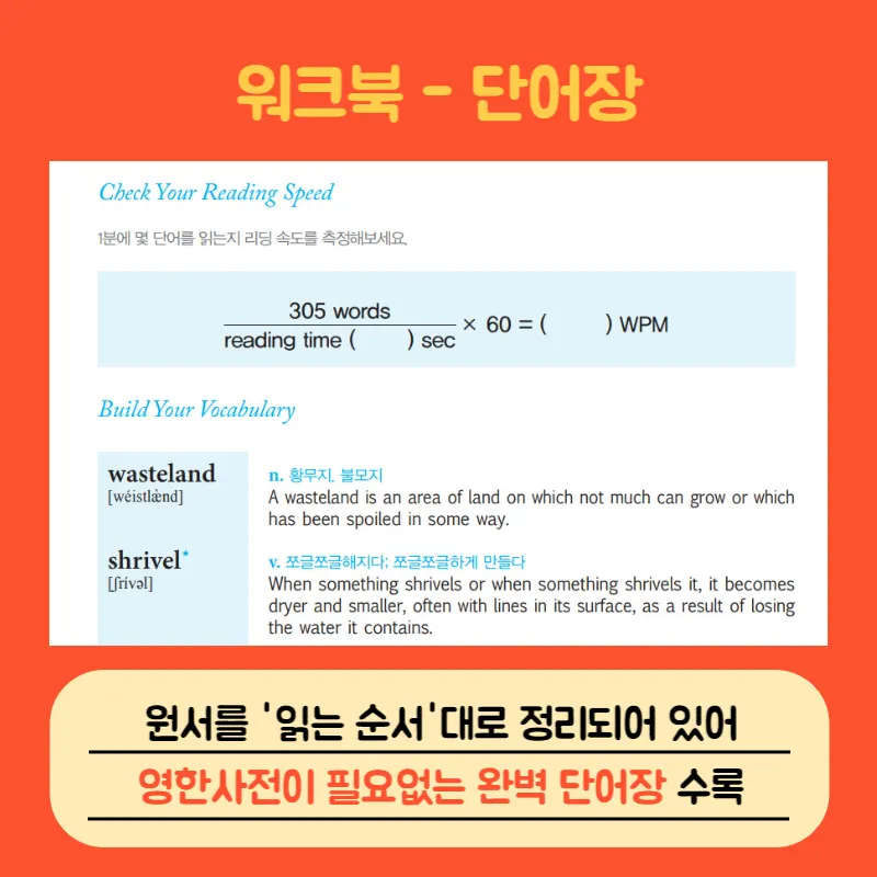 어려운 단어의 뜻은 워크북 단어장에서 확인할 수 있습니다.